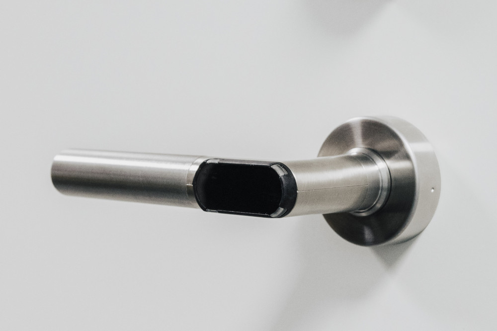 Electronic handle Round Rosette, Right, Stainless Steel (square 8mm - door thickness 30mm to 56mm) form – L | HAND-RIGHT-SS-L