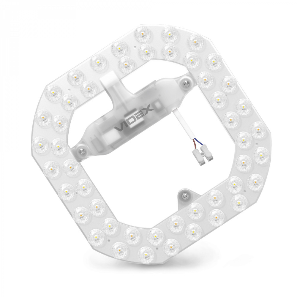 The LED module for VIDEX VL-MLC-32C luminaires is intended as a replacement light source for ceiling luminaires. In the event of a luminaire failure, it is enough to mount the module in the luminaire. The fastening is carried out using a magnet and there is no need to waste time re-mounting a new luminaire. ATTENTION! The mounted LED module is not intended for mounting outside the luminaire or with an open or damaged diffuser. The kit with the LED module includes a terminal block, user manual and individual packaging.