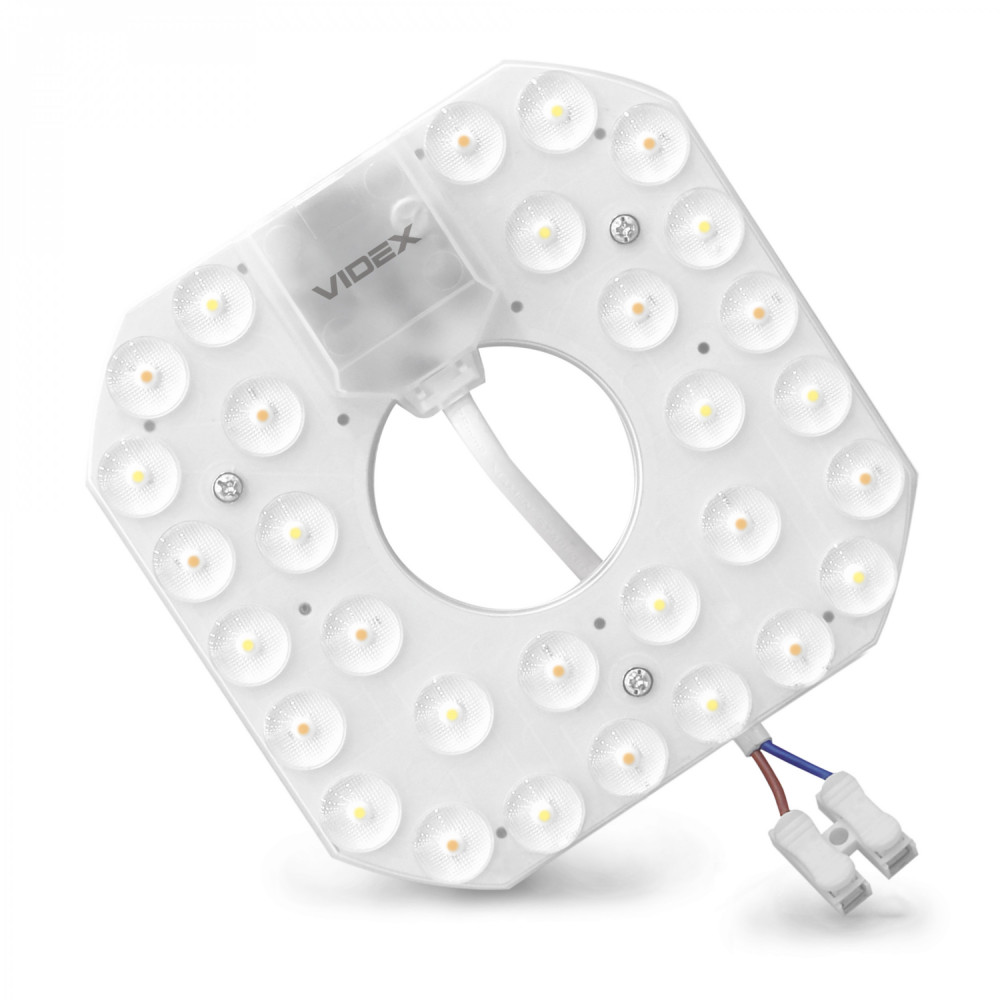 The LED module for VIDEX VL-MLC-20C luminaires is intended as a replacement light source for ceiling luminaires. In the event of a luminaire failure, it is enough to mount the module in the luminaire. The fastening is carried out using a magnet and there is no need to waste time re-mounting a new luminaire. ATTENTION! The mounted LED module is not intended for mounting outside the luminaire or with an open or damaged diffuser. The kit with the LED module includes a terminal block, user manual and individual packaging.
