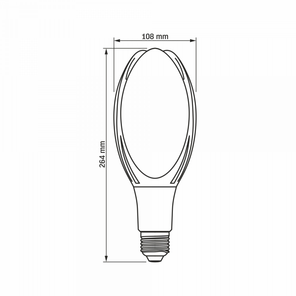 This High Power bulb is intended for industrial use, such as warehouses, hangars, workshops and other commercial buildings. With a traditional IC driver the bulb has a wide voltage range 176-264 V, that makes it work steady in unstable mains. Improved 3-side heat dissipation system provides better temperature exchange and ensures stable operation at high load conditions. Hovewer, we do not recommend using the lamp in sealed fixtures. The lamp contains no mercury and has no UV radiation.
