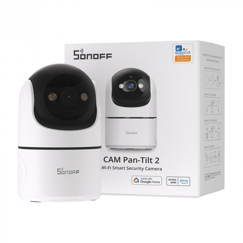 Meet the Sonoff CAM-PT2, a 2MP WiFi camera that gives you peace of mind and a complete view of your home from anywhere. With 1080P resolution, intelligent motion tracking and advanced night vision, this compact camera will become your ally in protecting your loved ones and property.
