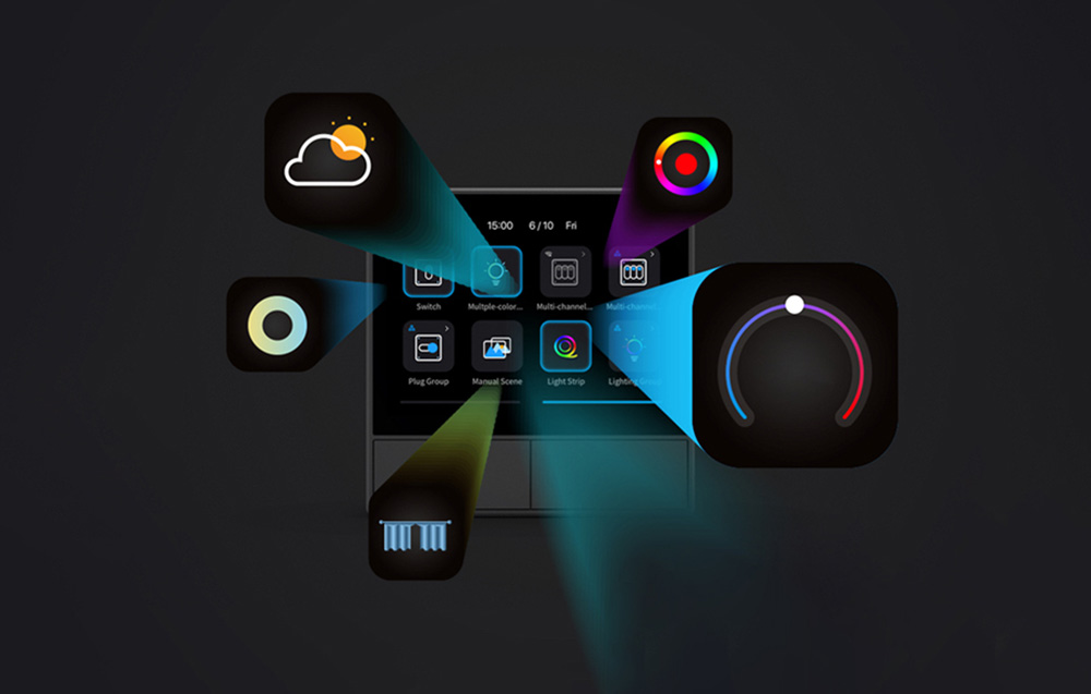 The switch is perfect for lighting control. Thanks to the HMI panel, it allows you to quickly and conveniently operate the smart bulbs or LED strips paired with it, as well as adjust their parameters. With just a few touches, for example, brighten the light, dim it, change its color temperature or color. Now in a few moments you can create a unique atmosphere for any occasion!