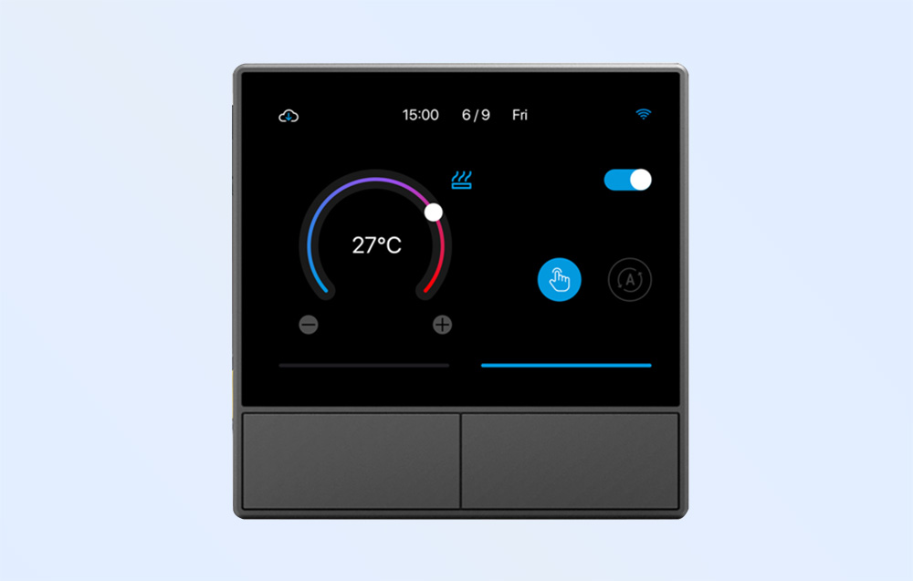 Now you can conveniently operate your devices and activate selected smart scenes with just a few touches. Sonoff wall switch is equipped with a touch screen HMI panel, which provides quick access to many useful functions. With its help, you can easily operate the lighting, adjust the operation of the air conditioning and more! What's more, below the display there are 2 physical buttons that will allow you to independently control 2 devices - for example, the one you use most often.