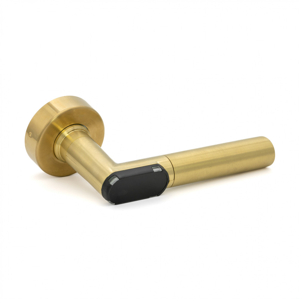 Standrata rokturis ar apaļu uzliku, labā puse (no ārpuses), Zelts (kvadrāts 8mm – durvju biezums 30mm līdz 56mm) – U1 forma