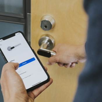 Mūsdienīga elektroniskās piekļuves vadībaElektroniskais durvju rokturis elegantā nerūsējošā tērauda dizainā aizvieto mehāniskos durvju rokturus. Durvis tiek atvērtas, izmantojot mobilo tālruni vai kartes/piekarus (čipus). Rokturis darbojas ar Bluetooth® Low Energy (BLE) signālu. Jaunu ēku projektēšanā esošās mehāniskās slēdzeņu sistēmas iespējams aizstāt ar modernām bezvadu piekļuves sistēmām.