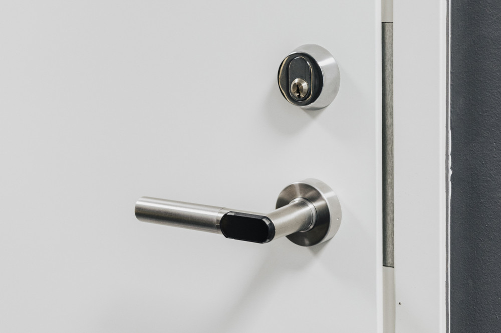 Standrata rokturis ar apaļu uzliku, labā puse (no ārpuses), Melns (kvadrāts 8mm – durvju biezums 30mm līdz 56mm) – L forma | HAND-RIGHT-BL-L