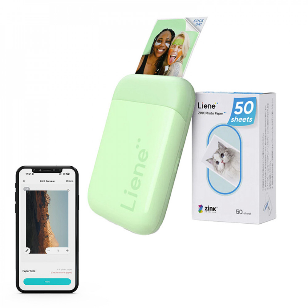 The Liene Pearl portable photo printer lets you turn your smartphone photos into durable, self-adhesive prints in seconds—no ink or cables required. The lightweight, pocket-sized design connects to iOS and Android devices via Bluetooth, and Zink® technology ensures clear, water-resistant, and smudge-proof prints. You can edit your photos in advance in the Liene Photo app, and the short printing time means the printer is ready to accompany you at any time. Convenience is complemented by a sliding cover for quick paper replacement, a print head cleaning function, and a starter kit with 50 sheets of Zink paper.
