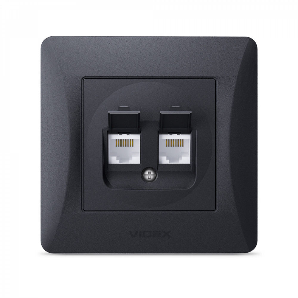 Kontaktligzda z/a Cat6+Cat6 (RJ45 spraudnis), Videx Binera, melna grafīta, IP20 VF-BNSK2PC6-BG